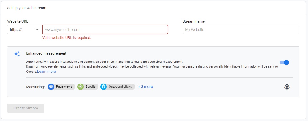 After that select the newly created data stream and you will use the "measurement ID" which will be used to setup your site's configuration in next session.