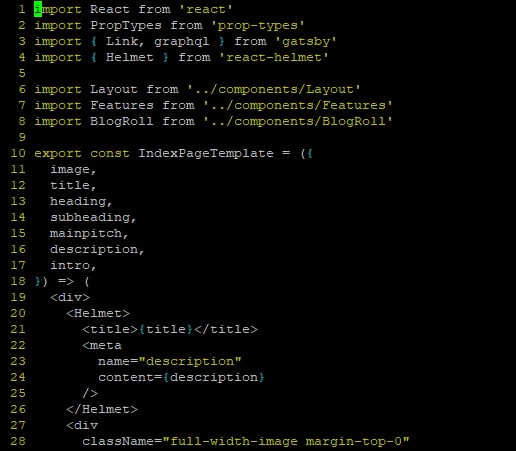 The gatsby-starter-netlify-cms template I am using already got gatsby-plugin-react-helmet installed. What Helmet do is to embed information to the HTML page to enable easier search by google bot. When you view your HTML source with Helmet data you will see the following.